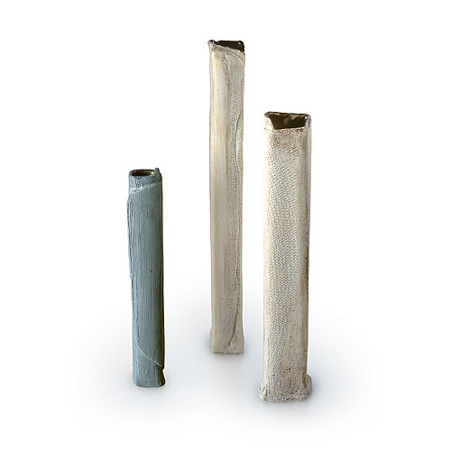 Stelen, Ton, innen glasiert, außen engobiert und mit Oxyden behandelt