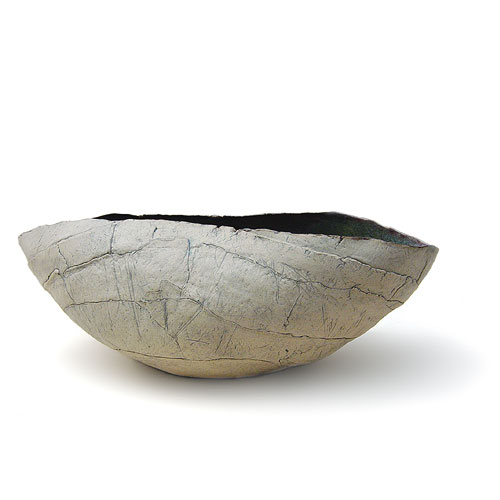 ovale Schale, Paperclay, innen Seladone und Chinarotglasur, außen Kupferoxyd