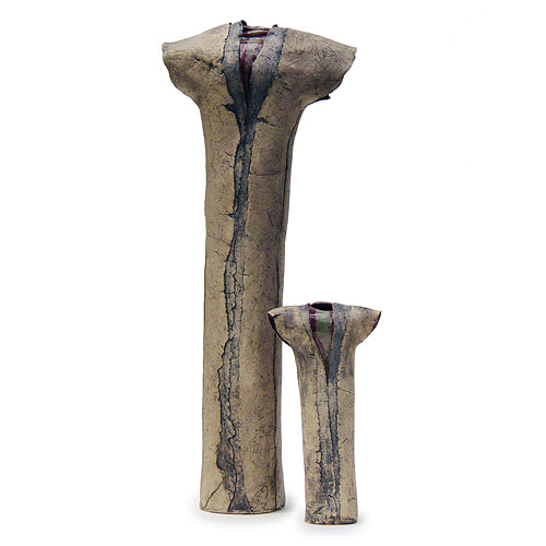 Körper Seladone und Chinarotglasur, Hülle strukturiert und mit Oxyden behandelt