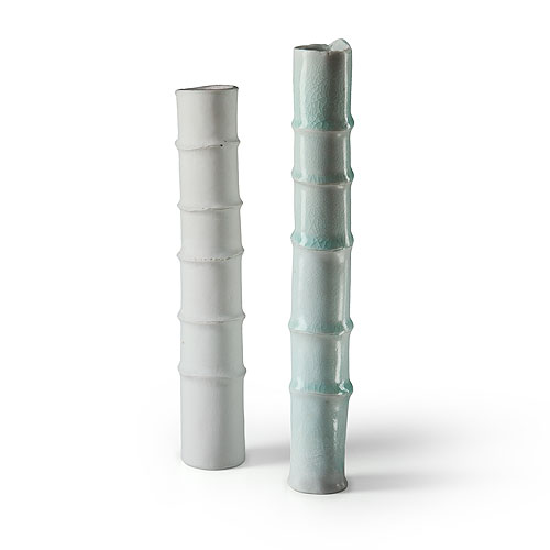 Bambusformen, Porzellan, Seladone und weiße Craqueléglasur